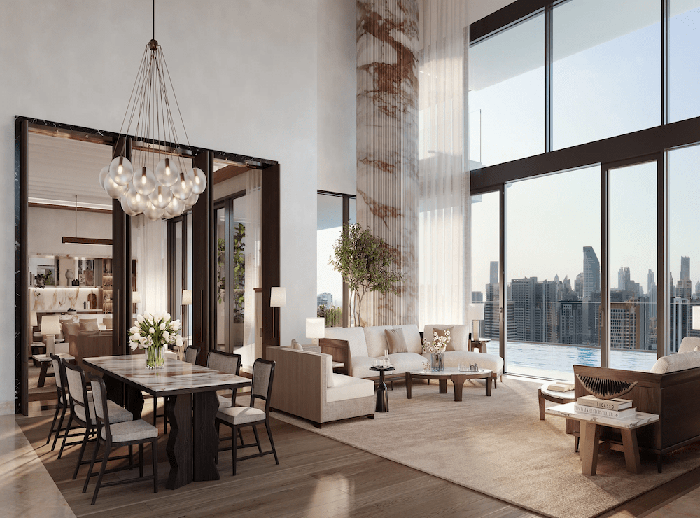 Интерьеры в стиле современная классика от парижского дуэта Gilles & Boissier заполнены светом из панорамных окон. На террасах Вы сможете наслаждаться уникальными видами на весь центр Дубая.